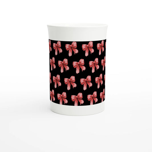 The Dawson- Pink Bow Cup White 10oz Porcelain Slim Mug